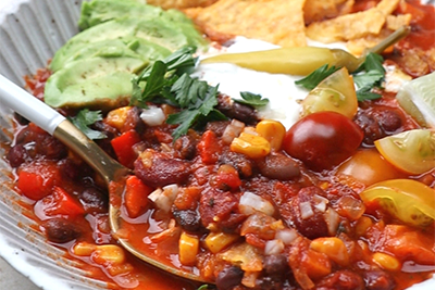 Brezmesni čili s fižolom, ajvarjem in paradižnikovo omako DROGA