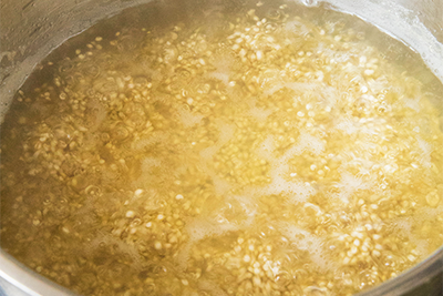 Kvinojo splaknemo pod tekočo vodo. Stresemo jo v 3,5 dl rahlo soljene vode in kuhamo po navodilih na embalaži. Kuhano kvinojo ohladimo.
