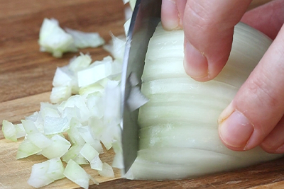 Krompir olupimo in narežemo na drobne kocke. Čebulo drobno sesekljamo. Kislo zelje DROGA odcedimo.